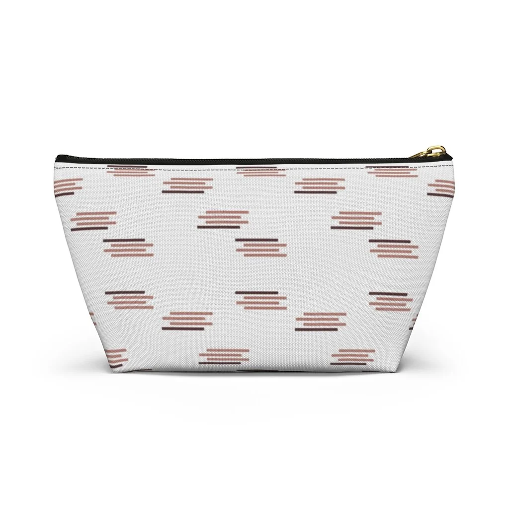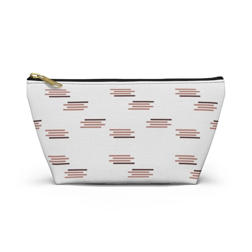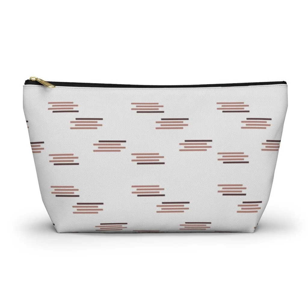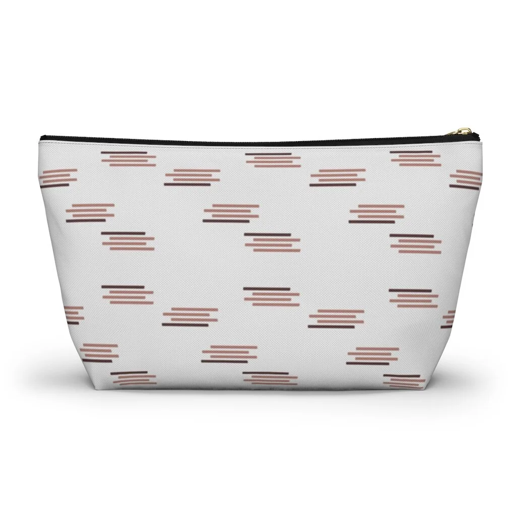 Our t-bottom pouches vary from small to large and can be used for pretty much anything. They make excellent pencil cases and cosmetic travel bags. They are constructed of a durable material with a zipper closure.