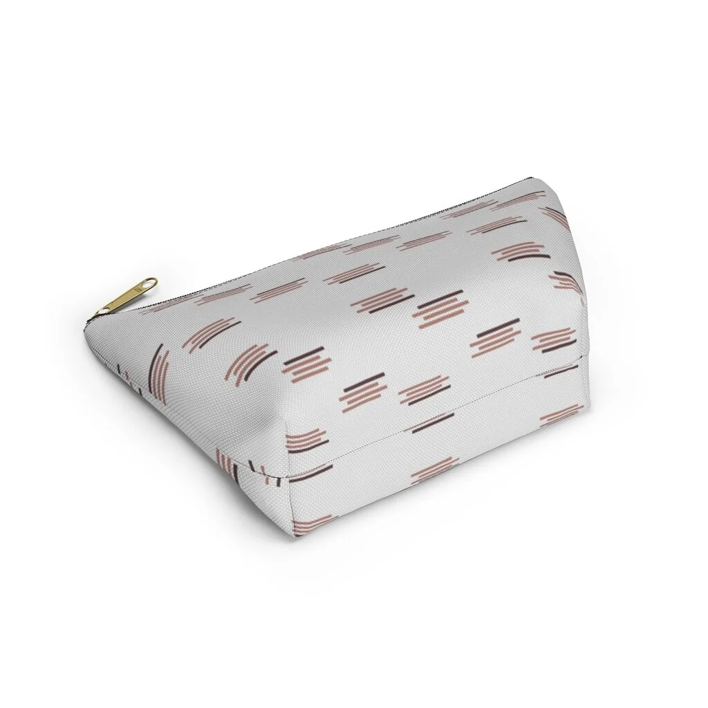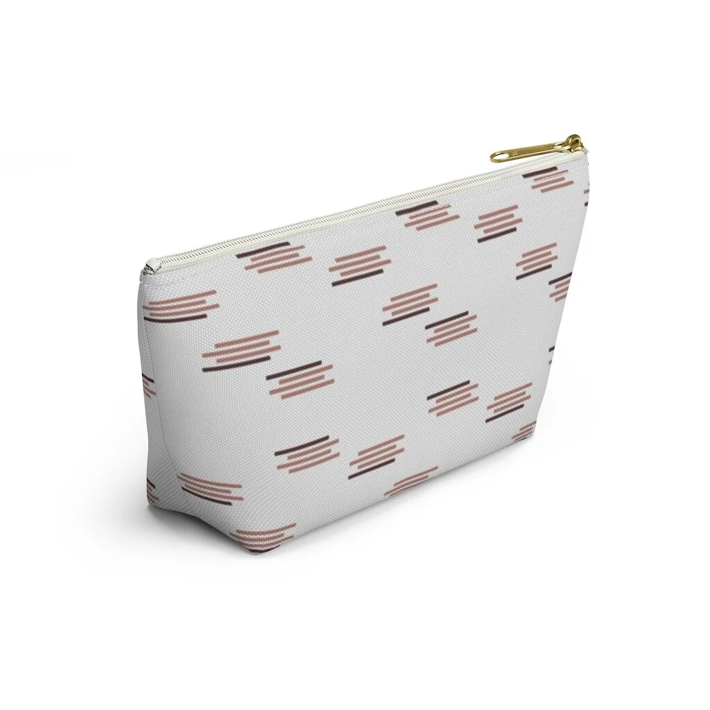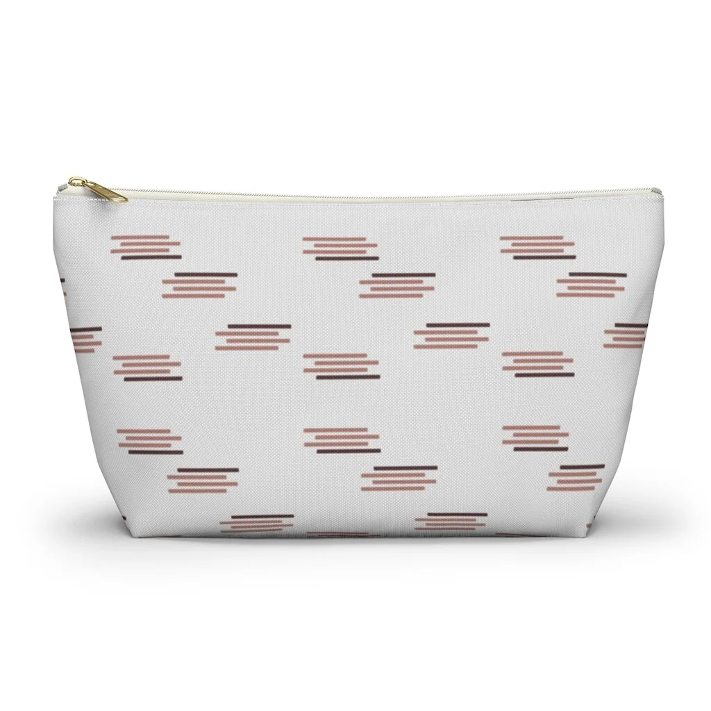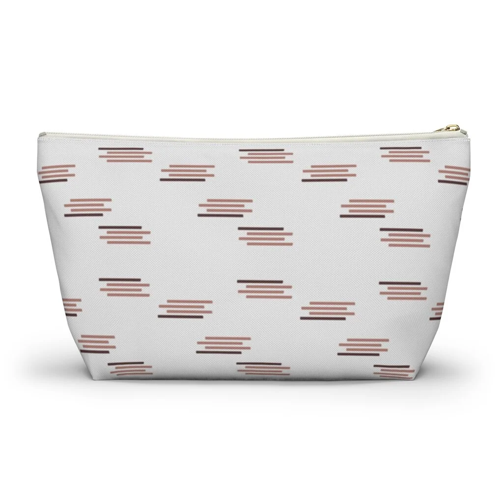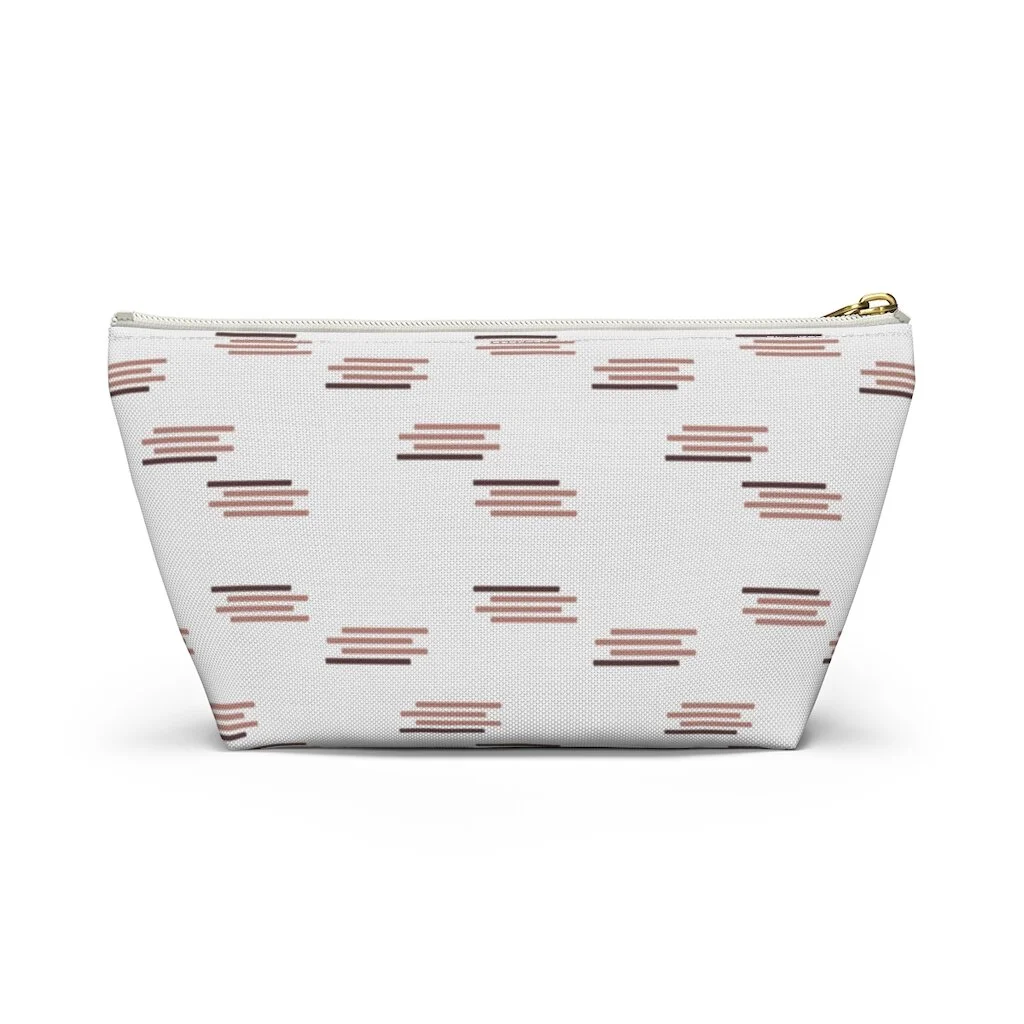 Our t-bottom pouches vary from small to large and can be used for pretty much anything. They make excellent pencil cases and cosmetic travel bags. They are constructed of a durable material with a zipper closure.